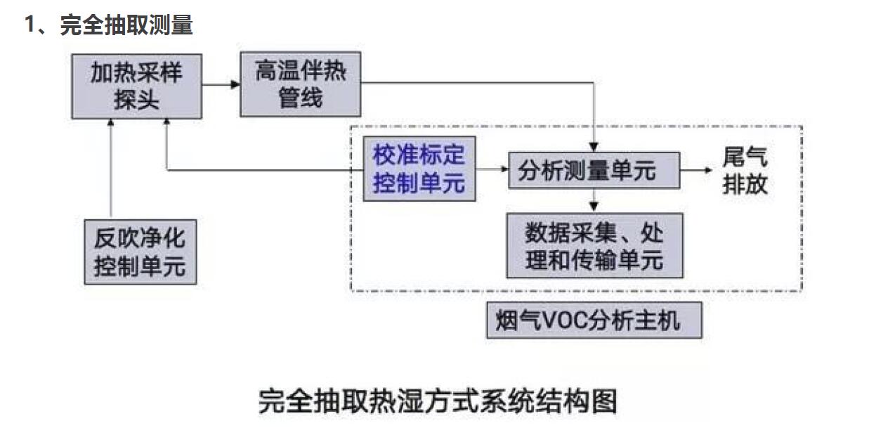 目前,根據(jù)采樣和測量方式的不同,VOCs檢測系統(tǒng)可以劃分為完全抽取測量、稀釋抽取測量和直接測量三種。